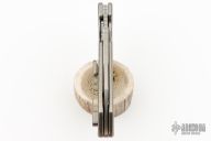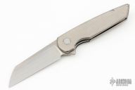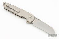 The Model 2 is a Titanium, mid-tech, flipper knife, with a liner lock. The blade is made of MagnaCut stainless that has been heat-treated and cryogenically tempered. The blade has a light stonewash finish and rides on ceramic caged bearings.  It has a Ceramic detent ball. The pivot and pivot screw are made from hardened 416 stainless. The liners are 17-4 PH stainless with a titanium backspacer. The pocket clip is made from titanium.