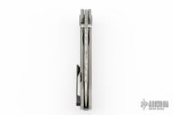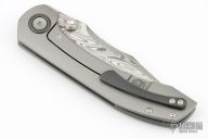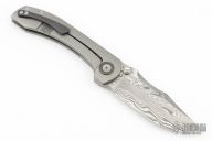 This Raptor by Brian Brown features a Damasteel blade with dual thumbstuds and notched thumbrest. The handle has a bead blasted titanium frame with a zirconium pivot collars, tip up clip and backspacer. Comes with a zippered case. Excellent condition.