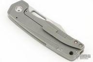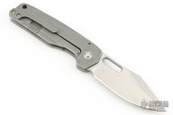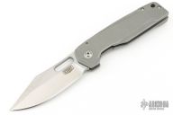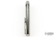 This Trilobite by Jason Stout features a tumble finished blade, fullers and a thumbhole. The handle has a milled and tumbled titanium frame, matching tip up pocket clip and a dark tumbled and a D2 steel backspacer. Nice detent, lockup and blade seating. Includes a padded zippered case and COA. Excellent condition.