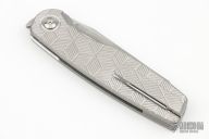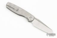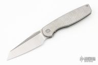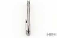 This Cortex XL by Brown Knives features a clip point stonewashed finish blade with fullers, notched thumbrest and front flipper. The handle has a milled titanium frame with stonewashed backspacer and milled tip up clip with hidden screws. Has overtravel stop. Rides on bearings, nice detent, lockup and blade seating. Comes with original box and COA #119. Excellent condition.