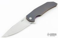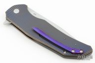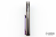 This Dragonfly Slim Flipper by Herman Knives features a tumbled clip point blade with flipper and laser textured thumbrest. The handle has a milled an anodized titanium frame, titanium liner, and tip up titanium clip and a black titanium backspacer. Nice detent, lockup and blade seating. Rides on bearings. Excellent condition. Comes with zippered case and COA dated 12/28/21.