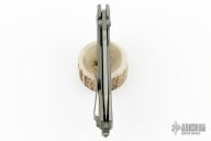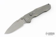 This large folding knife offers some truly unique experiences. The frame lock can be actuated by either pressing the button on the presentation scale, or by manually moving the lockbar like on any other traditional frame lock. Once the blade is open, slide the switch on the presentation scale towards the button, thus activating a secondary lock which prevents the frame lock from moving, effectively transforming the Evolution into a fixed blade until you're ready to re-pocket it. Although the secondary lock cannot be used while the blade is closed, that shouldn't an issue thanks to a strong detent. Includes the original box. Excellent Condition.