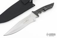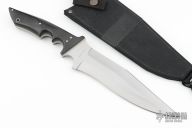 This Larry Battle Bowie by Paragon Cutlery Company features a bead blasted blade with sharpened top edge, .241" blade stock and 1.972" blade depth, full tang construction. The handle has black linen micarta scales with stainless steel pins and lanyard hole. Comes with original nylon sheath. Excellent condition. First Production Run.