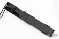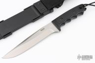 This SOK by Hill Knives Holland features a satin finished blade with false top edge, .194" blade stock and 1.407" blade depth, hidden tang construction. The handle is black polycarbonate grip. Comes with a black composite sheath. Has a couple light scratches, otherwise excellent condition.
