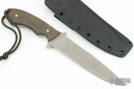 White River Knives is proud to introduce their first tactical design not by Justin Gingrich, and second collaboration with Master Bladesmith Jerry Fisk, the Defender. Aptly named, this combat fixed blade is well designed for all tactical, camping and hunting tasks. The 6.5" blade is made from excellent S30V stainless steel with a superb stonewashed finish. It is available with a standard full flat grind, great for skinning, or with a sharpened top edge, great for stabbing. The smooth Micarta handle is locked into your hand with a large finger groove and flared butt end with a lanyard hole drilled in. The Kydex sheath includes a Kydex belt loop fit for a 2" belt and can be set up for vertical or horizontal carry. The knife is comfortable to cut with, beautiful to look at and as durable as any design out there. Each knife is precision ground, hand finished and leather honed. Micarta handle coloring will vary. Proudly made right here in the USA.