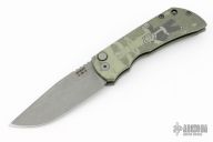 This MAC2 Auto by Jonathan McNees features a stonewashed clip point Magnacut blade with a notched thumbrest.  The handle features an Atomic Green Vault Boy Edition titanium frame with a stonewashed tip up pocket clip. Excellent condition. Comes with original box and papers.