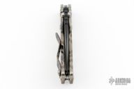 In 1988, he began making specialized knives for use by the military. This turned out to be fortunate turn of events, both for Mick and for the knife using world at large. Mick’s approach was to not get burdened by the weight of past designs. He started with a tabula rasa, a clean slate, informed only by his own experiences and knowledge of what a soldier needed in a knife. The knives he made didn’t look like the hunter-inspired knives seen in most PXs; instead they were almost brutish in their functionality: beefy, solid, and with unbreakable ¼” stock full tangs. These knives were the first indication of his innovative approach: in addition to their utilitarian design, the knives carried a subdued finish and subdued sheaths. No one carrying a Strider knife was going to be spotted because of sunlight glinting off of polished steel or a glossy leather sheath. Soldiers, policemen, and other men going into harm’s way couldn’t buy them fast enough. Mick sampled some good ideas, but made them great. For instance, he was not the first to wrap a knife handle with paracord, but he was the first to do it in a way that was tough enough for sustained infantry use. His knife line grew over the following years to include different varieties of fixed blades, all distinctive and many with specialized uses. But constant in all of them was a disregard for convention, and a desire to try new ideas. An example of this was the Ajax – it featured a very wide blade surface clearly designed to inflict damage. It drew on the weapons carried by Roman legionnaires, yet was modern and usable in the 21stCentury battlefield. Mick also worked on his technical skills, always striving to become better at the physical craft. At the 2002 Blade Show, a group of the best tactical knifemakers in the country decided to compete with each other to produce the most innovative and interesting fixed “battle blade” at the show. Mick’s entry, an incredible integral knife made out of ½” titanium stock with a zippered composite blade, gorgeous handles, and integral guard was the unanimous winner, and effectively retired the competition.