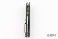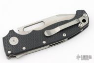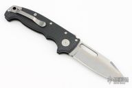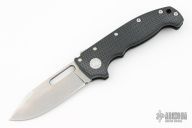 This AD20 by Demko Knives features a stonewashed clip point blade with notched thumbrest and a thumbhole.  The handle has a black G-10 frame with a tip up stainless steel clip and "Shark" lock release on the spine. Comes with original box. New condition.
