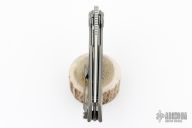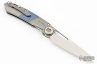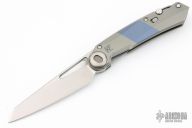 This Terra By Custom Knife Factory features a satin finished M390 clip point blade, notched thumbrest, and thumbhole. The handle is comprised of a titanium frame with a titanium clip and lanyard bail. The whole item can be field stripped due to its pin style construction. Comes with CKF case, COA, and extra parts. Excellent Condition.