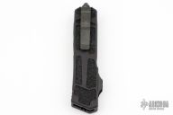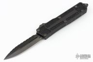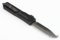 The Microtech Scarab II is a high quality tactical out-the-front knife, based on the original Microtech Ultratech design. Built to withstand the extreme, the Scarab II excels in high-intensity covert operations. The Scarab II is designed for a broad spectrum of utility and close quarter combat applications for use by qualified law enforcement, military, and government agency operatives. The Scarab II is fabricated to the highest possible standards to assure reliability and safety with its use. Featuring a one-handed, open and close, dual-action out-the-front (OTF) design, and double edge blade. The Scarab is produced with a large easy-to-grip handle that contains non-slip grip inlays on both sides. Comes with original box and papers. Excellent condition.