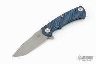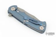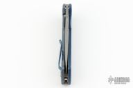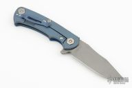 This Project X Flipper by Rick Hinderer Knives features a working finished Magnacut blade, notched thumbrest and flipper, dual thumbstuds. The handle has a black/blue G-10 scale, and battle blue titanium frame with matching clip. Nice lockup, seating, and detent. Comes with original box and extra hardware. Excellent Condition.