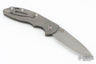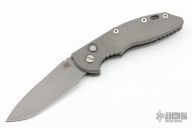 This XM-18 Flipper by Rick Hinderer Knives features a 3.5" working finish blade, notched thumbrest and flipper.  The handle has a working finished titanium frame with a matching tip up pocket clip.  Comes with original box and papers. Excellent condition.