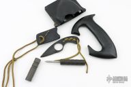 This version G10 La Griffe features a 1.75" cutting edge .251" blade thickness and .994" blade depth. Perfect fit in the hand. Comes with kydex neck sheath. Has scuffs and scratches, great condition.
