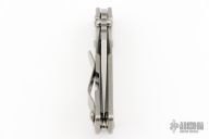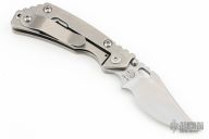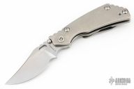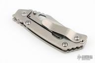 This PT Persian by Mick Strider features a stonewashed blade with notched thumbrest and thumbhole. The handle has a stonewash finished titanium frame with matching tip up clip. Excellent Condition.