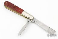 This two blade Barlow by Case features two satin polished blades both with long pull and nail nick. The handle has jigged red bone covers, nickel silver bolsters, brass liners and stainless steel springs. Has light scuffs, patina and scratches, otherwise great condition.