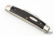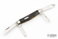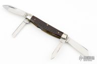 This 4 Blade Congress by Case Knives features four blades with nail nicks. The handle is comprised of nickel silver cap and bolsters with jigged bone covers over brass liners and steel back springs.Some light scuffs, patina, and scratches, otherwise good condition.