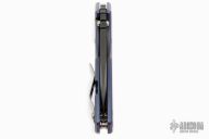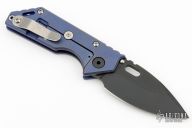 This 3/4 AR by Strider Knives features a black PVD coated S45VN blade with notched thumbrest and thumbhole. The handle has a tumbled and anodized titanium frame with a stonewashed titanium tip up clip. Nice detent, lockup and blade seating. Excellent condition.