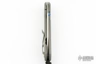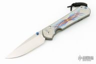 This Large Sebenza 31 by Chris Reeve Knives features a satin and tumble finished blade with notched thumbrest and single titanium thumbstud. The handle has a bead blasted titanium frame with unique graphic, titanium lanyard pin. Comes with original box, sheath and papers dated October 13, 2021. Excellent condition.