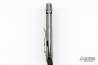 This Umnumzaan Framelock Folder by Chris Reeve Knives has a stonewashed tanto point blade with dual thumb studs and notched thumbrest. Handle is bead blasted titanium with titanium barrel spacer, titanium tip up deep carry Lynch clip, and lanyard hole. Nice detent, lockup and blade seating. Comes with original box, papers dated May 26, 2022, tool. Excellent condition.