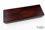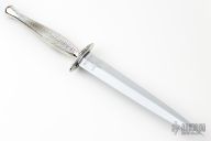 This USMC Marine Raider Stiletto by HG Long & Co features a double edged mirror finished blade, .166" blade stock and .943" blade depth, hidden tang construction with cast and polished zinc handle. Comes with original wooden presentation box and COA. Excellent condition.