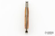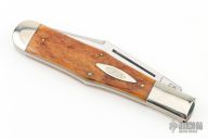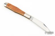 This Coke bottle folder by Case knives has a mirror polished blade with nail nick. The handle has nickel silver double bolsters, Roger's Banana bone covers, brass liners, steel spring. Has half stop, flush in all positions. Comes with original box and certificate of authenticity. Has some light scratches, otherwise excellent condition.
