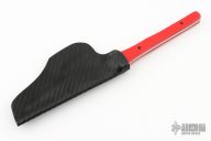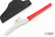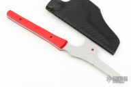 This knife by David Lancaster Clark features a satin finished blade, .115" blade stock and .458" blade depth, full tang construction. The handle has red G10 scales scales. Comes with a kydex sheath. New from maker.