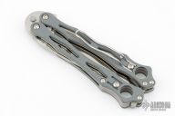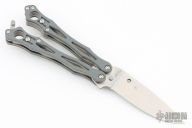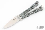 Spyderco's original SmallFly was a uniquely different "spin" on the balisong, or Filipino butterfly knife. Now this remarkable design is back with this special limited featuring full-flat-ground, drop-point blade profile crafted from CPM-Cru-Wear. Like the original, it features skeletonized twin handles with full stainless steel liners and peel-ply-textured Gray G-10 scales. The Round Holes at the butt end of both handles reflect Spyderco's iconic trademark and help achieve optimal balance for high-speed manipulation. A spring-loaded latch attached to the "free" handle secures the handles together in the closed position, while the removable wire pocket clip may be attached to either side of both handles as both a carry option and tactile index.