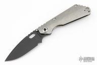 This Mick Strider Performance series SNG framelock folder features a black drop point blade with thumbhole and notched thumbrest. The handle has a stonewashed titanium frame with titanium clip, tip up carry. Jimping on blade spine. Includes Hinderer "Lock Bar Stabilizer" for maximum reverse lock retention. Nice lockup, detent, and blade seating. New from maker at the 2024 Blade Show..