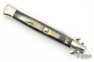 This 11" Picklock by INOX features a satin finished flat ground blade. The handle has nickel silver bolsters, front and rear, buffalo horn scales, D-stamped brass liners, stainless spring. Has some light scratches, otherwise excellent condition.