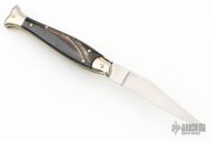 Angelo Campolin Sr. was born in 1923 in Maniago, Italy. He worked on perfecting his knife making skills before WWII and at this time made his first switchblades. After the war, in 1947 he started his company and made 30 stilettos with the marking “Angelo Campolin”. In the 1970’s Angelo’s son Gianni started to work in the company and they were specializing in folding hunting knives and also manual folding stilettos for the Robert Klaas company in Solingen Germany with their Kissing Cranes mark. In 2002 American switchblade collectors Dan Fuller, Brad West, and Tim Zinser were visiting Maniago and enjoying a few glasses of wine in a bar with Angelo Jr. and Gianni. The discussion was about a new name for some knife projects they wanted to pursue. It was Brad West that suggested the tang stamp should be AGA, for Angelo, Gianni, Angelo, thus representing three generations in the knife making business. The Campolins liked it and it stuck. In the beginning it was just a few items, but grew to the point where now there are 12 models and different scale options. The goal has been to offer quality switchblades using the old methods and traditions. Being a collector himself, Angelo Jr. knows what others like. The company headquarters has moved to Austria with production still in the original Maniago shop, as well as the others in Maniago that produce the knives for A.G.A. Campolin.