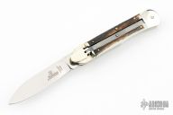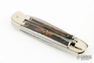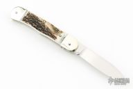 This leverlock auto by Hubertus features a mirror polished blade, nickel silver double bolsters, stag scales, nickel silver liners and brass pins. Opens with a nice snap. Very fast opening. Comes with original box and papers. New condition.