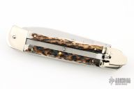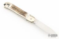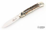 This leverlock auto by Hubertus features a mirror polished blade, nickel silver double bolsters, stag scales, nickel silver liners and brass pins. Opens with a nice snap. Very fast opening. Comes with original box and papers. New condition.