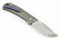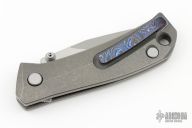 This Brat Knife features a bead blast finished drop point blade with a notched thumb rest and dual thumbstuds. The handle has a tumbled titanium frame and tip up Zircuti pocket clip.  Includes a COA and a padded velcro case.  S/N 246. Dated 04/24. Excellent condition.