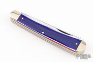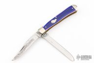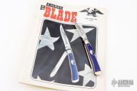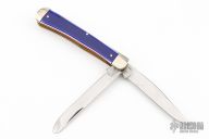 This Two-Blade Trapper from Ka-Bar features polished blades with nail nicks. The handle has a nickel silver bolsters and pommel, laminated plastic covers with nickel silver escutcheons, brass liners and stainless steel back springs.  Comes with,"The American Blade," magazine and a padded zippered case. Has some scuffs otherwise the knife is in excellent condition.