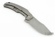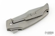 This Vitamin B by Jens Anso and Tashi Bharucha features an acid/tumble finished blade with flipper. The handle has a tumble finished titanium frame, backspacer and tip up clip. Nice detent, lockup and blade seating. Comes with zipper case. Blade favors the right side slightly. Excellent condition.
