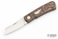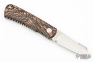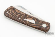 This Hitchcock slipjoint by Nick Timpson of Birdvis Knives features a hand rub satin finished blade with nail nick. The handle has Platan wood covers, black liners, stainless steel escutcheon, stainless steel liners and spring. Has half-stop, flush in all positions. Comes with original box, sheath and COA dated 09/2021. Excellent condition.