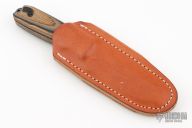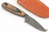 This Guardian 3.5 by Bradford Knives features a dark tumble finished drop point blade with notched thumbrest, .162" blade stock and 1.091" blade depth, full tang construction. The handle has a contoured micarta scales over full tang construction. Exposed tang pommel with lanyard hole. Includes leather sheath. Excellent Condition.