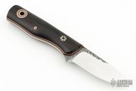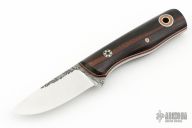Hi, I am Andy Roy, the maker at Fiddleback Forge, LLC. I started making knives in 2007, and went full time May 1, 2009 when I got laid off of my last engineering position. I consider myself a toolmaker, and much of the focus of my work is in the handle. I strive to make the most comfortable handle you?ve ever held. It is important to me that you can hold the knife in many positions comfortably and do hard extended work with the blade. I also think it is important for the handle to index the knife in your hand, so that no matter how you hold it, you know where the edge is without having to look. I use a variety of steels, and my favorite grinds are convex, and Scandi. In 2010 I spent a lot of time developing a finish treatment for the flats of my knives that I call 3D Spalted Steel. It adds a unique character to my blades, and I think it complements the refined handle work well. I am very excited to be working with Arizona Custom Knives, and hope you enjoy the Fiddleback Forge knife you buy from them.
