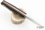 This Humpback by Fiddleback Forge features a drop point blade, .165" blade stock and .816" blade depth, tapered tang construction. The handle has wood scales over white/brown liners. Excellent Condition.