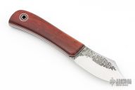 This Sylvrfalcen by Fiddleback Forge features a clip point blade, .1" blade stock and 1.169" blade depth, full tapered tang construction. The handle has wood scales with white/brown liners. Excellent condition.