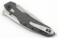 This ZT is reliably strong thanks to its steel construction. Other elements pay homage to the original 0999, including an exposed “floating bridge” near the top of the handle, carbon fiber scales with a front steel overlay, and cutout windows in the blade and near the pivot. Instead of a ZT logo on the blade itself, the words “Zero Tolerance” are subtly embossed into the backspacer. The CPM-20CV blade offers excellent edge retention and opens reliably with KVT ball bearings. Includes the original box and papers. Ser 1215. Excellent Condition.