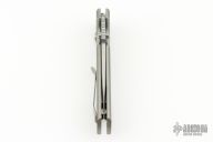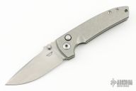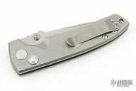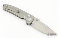 This Project VECP Buttonlock from Les George features a stonewashed CNC flat ground blade and a tumble finish titanium frame. Tip up titanium clip. Phosphorus bronze washers. Smooth action. Nice blade seating, detent and lockup. Excellent condition.