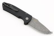 The Short Bladed Rockeye, or SBR for short, is a compact version of the outstanding full sized Rockeye Auto. Both knives are designed by Marine Corps knife designer Les George, who’s ergonomic hard use knives have been faithfully translated to automatic versions by Pro-Tech. The SBR features a compact design, with a 2.5″ blade that’s built for a multitude of cutting tasks. A pocket milled spine adds extra grip and depth to the design. The SBR features a solid black aluminum handle, blasted hardware, black DLC coated deep carry clip, and an acid washed blade. Comes with original box and papers. Excellent condition.