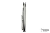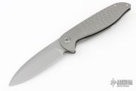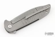 This knife features a satin finished drop point blade and notched thumbrest. The handle has a bead blasted titanium frame with a matching tip up pocket clip. Includes a padded zippered case. Excellent Condition.
