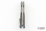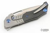 This knife sports a bead blast finished titanium handle with carbon fiber scales and a satin finished drop point blade. It offers Mikkel Willumsen's distinctive design style and a solid titanium build. The STIXX is a versatile knife that will make light work of any large or small cutting job.  Includes a padded hard case.  Excellent Condition.