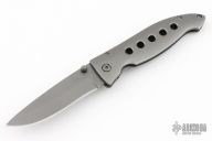 This frame lock is a Tom Mayo design executed by Buck Knives. It features a bead blasted drop point blade with dual thumbstuds. The handle has a drilled steel frame.  Stainless steel tip down clip and lanyard hole in pommel. Excellent Condition.