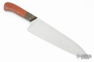 This Chef knife by Alden Cole features a hand rub satin finished blade with .095" blade stock and 2.061" blade depth, full tang construction. The handle has micarta bolsters/scales. Includes a coa. New from maker!