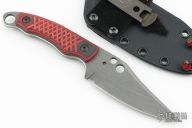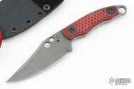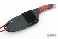 This Impail by Justin Koch of Koch Tools features an acid wash tumble finish clip point blade with .139" blade stock and 1.403" blade. The handle has black/red G-10 scales over full tang construction. Exposed tang pommel with over sized lanyard hole. Includes a kydex sheath with clip. Has a couple sheath scratches otherwise excellent condition.