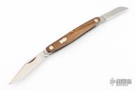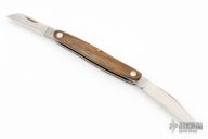 This Knife by Canal Cutlery features satin finished blades with nail nicks. The handle has Mexican Bocote covers, stainless steel liners and stainless steel spring. Excellent condition.