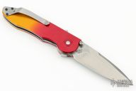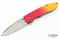 This Sirus assisted opening folder by Buck Knives features a stonewash finished blade with flipper and false top edge. The handle has anodized aluminum scales with flame motif, stainless steel liners and tip up clip. Fast and smooth assisted action via thumb studs or flipper. Comes with original box and papers. Excellent condition.